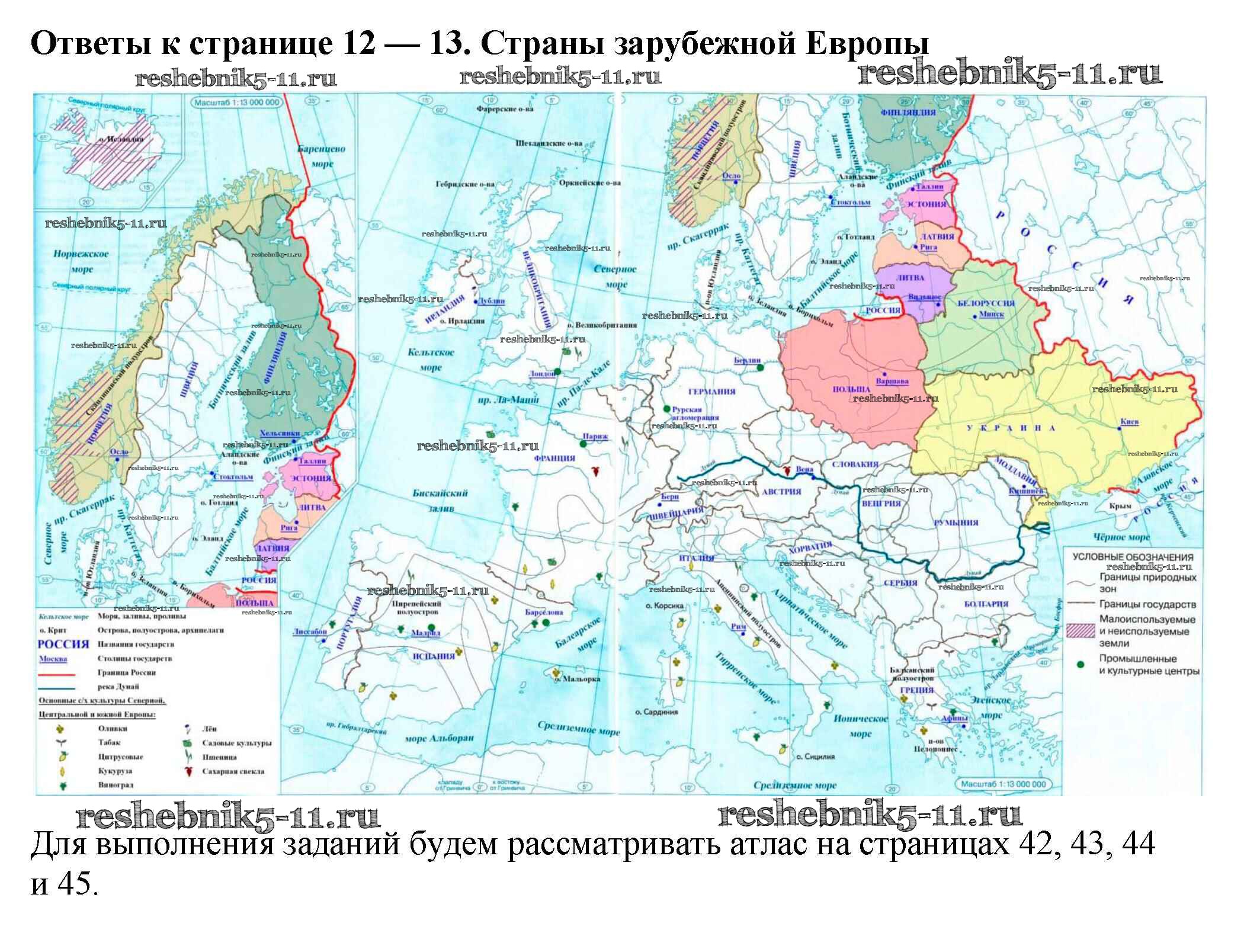 Готовая домашняя работа с ответами по Географии за 7 класс Курбский Контурные карты Дрофа 2018 ФГОС - Издание 2021 год стр.12-13