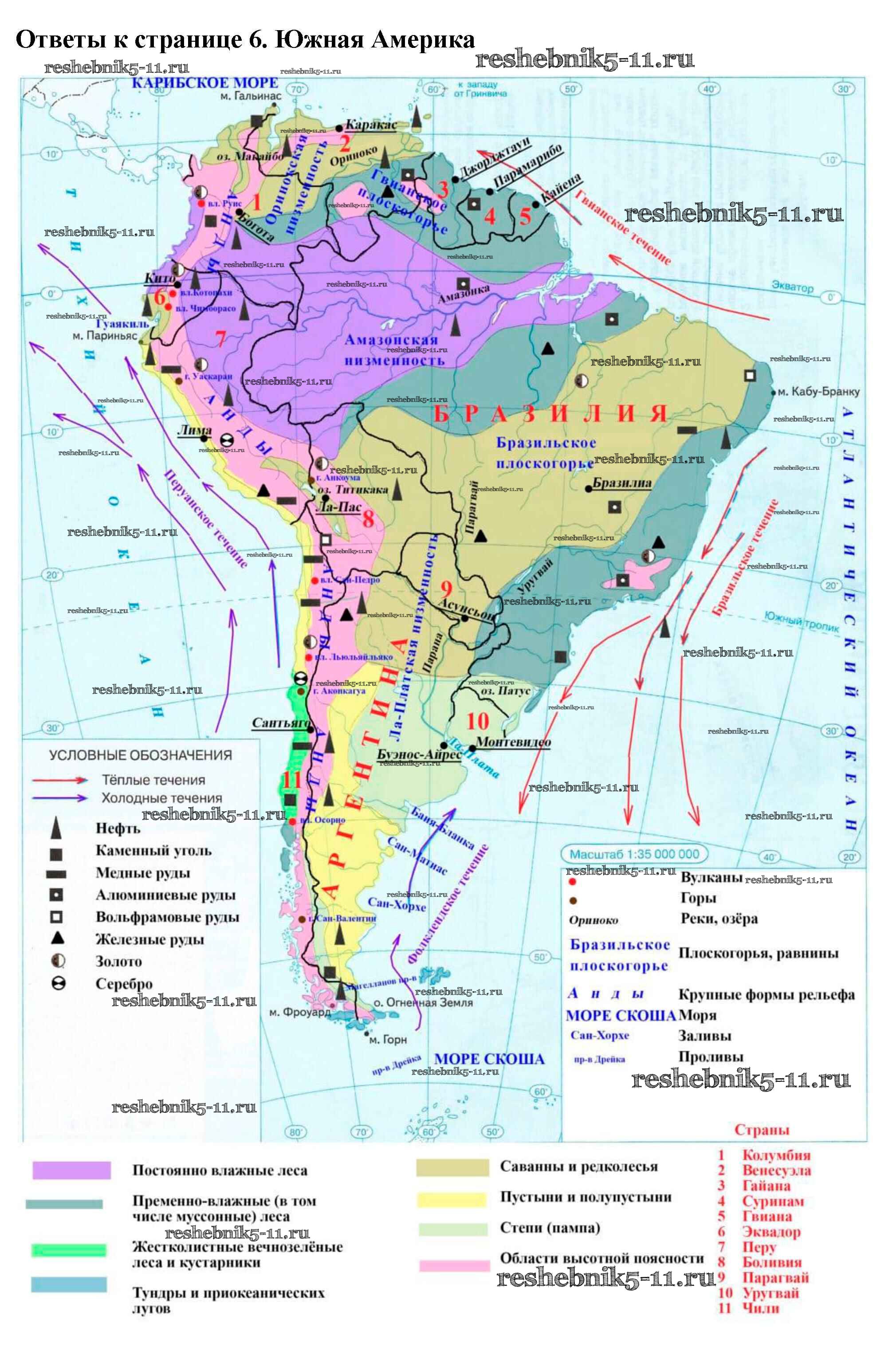 Готовая домашняя работа с ответами по Географии за 7 класс Курбский Контурные карты Дрофа 2018 ФГОС - Издание 2021 год стр.6