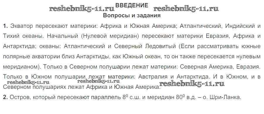Готовая домашняя работа с ответами по Географии за 7 класс Коринская, Душина, Щенев Учебник Дрофа 2017 ФГОС - Параграфы Введение
