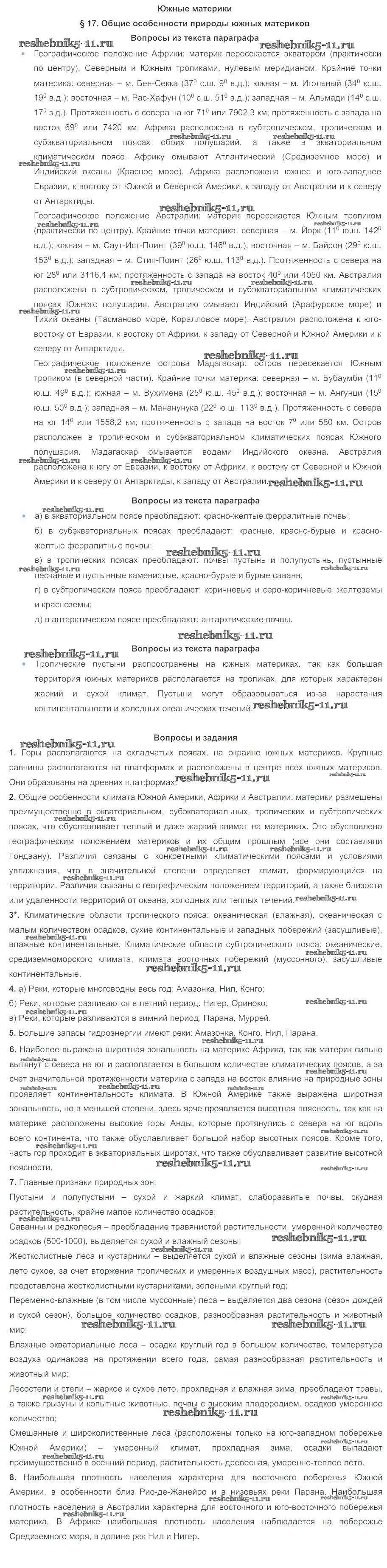 Готовая домашняя работа с ответами по Географии за 7 класс Коринская, Душина, Щенев Учебник Дрофа 2017 ФГОС - Параграфы 17