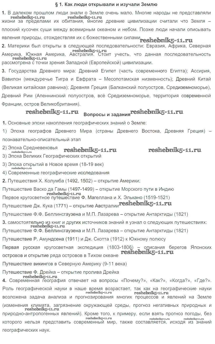 Готовая домашняя работа с ответами по Географии за 7 класс Коринская, Душина, Щенев Учебник Дрофа 2017 ФГОС - Параграфы 1