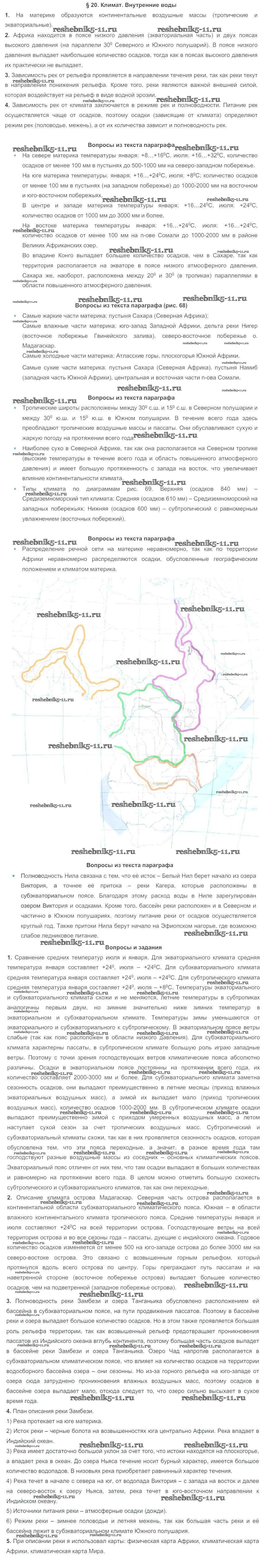 Готовая домашняя работа с ответами по Географии за 7 класс Коринская, Душина, Щенев Учебник Дрофа 2017 ФГОС - Параграфы 20