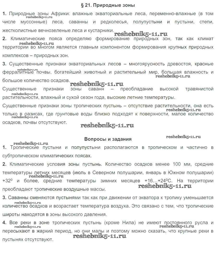 Готовая домашняя работа с ответами по Географии за 7 класс Коринская, Душина, Щенев Учебник Дрофа 2017 ФГОС - Параграфы 21
