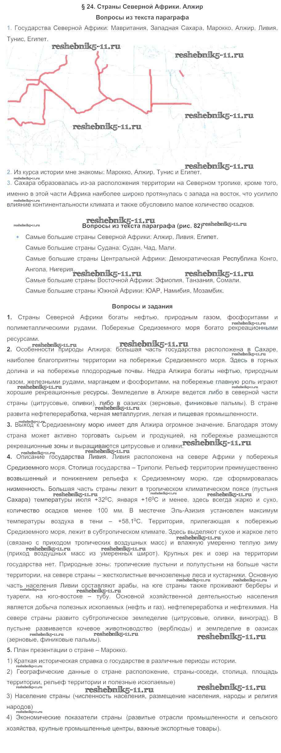 Готовая домашняя работа с ответами по Географии за 7 класс Коринская, Душина, Щенев Учебник Дрофа 2017 ФГОС - Параграфы 24