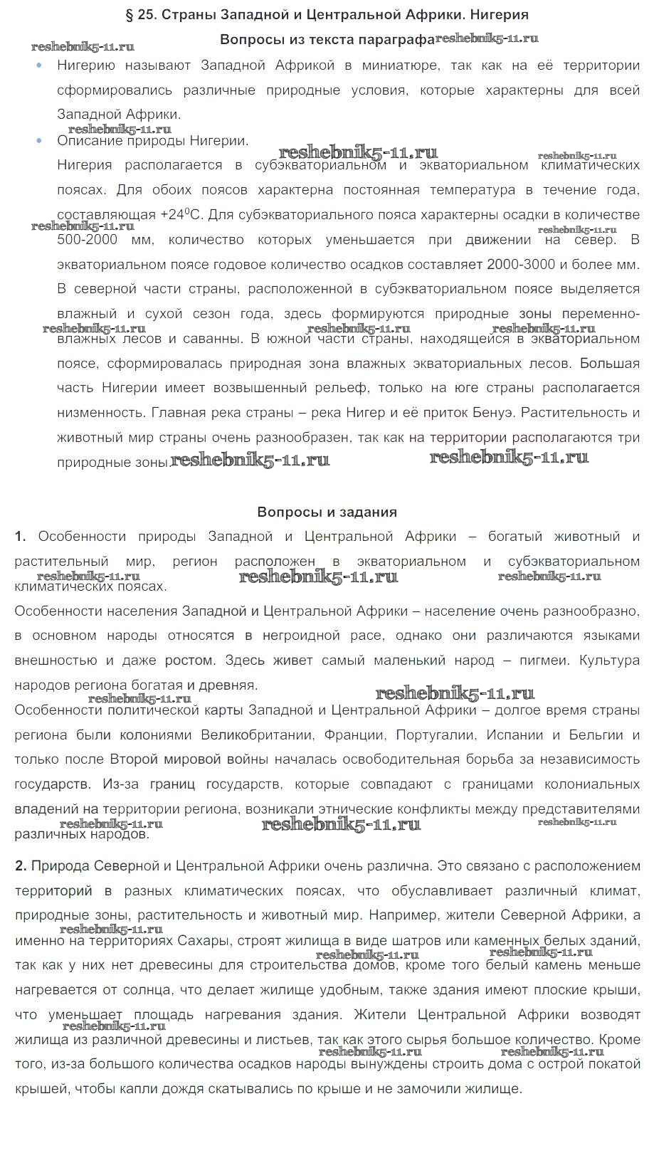 Готовая домашняя работа с ответами по Географии за 7 класс Коринская, Душина, Щенев Учебник Дрофа 2017 ФГОС - Параграфы 25