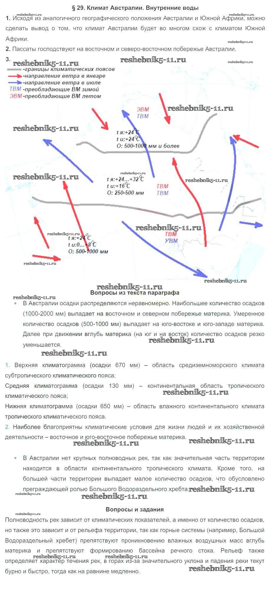Готовая домашняя работа с ответами по Географии за 7 класс Коринская, Душина, Щенев Учебник Дрофа 2017 ФГОС - Параграфы 29