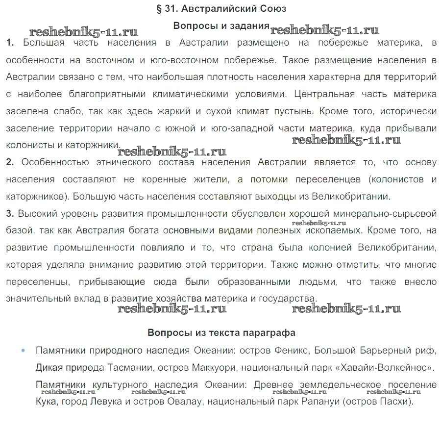 Готовая домашняя работа с ответами по Географии за 7 класс Коринская, Душина, Щенев Учебник Дрофа 2017 ФГОС - Параграфы 31