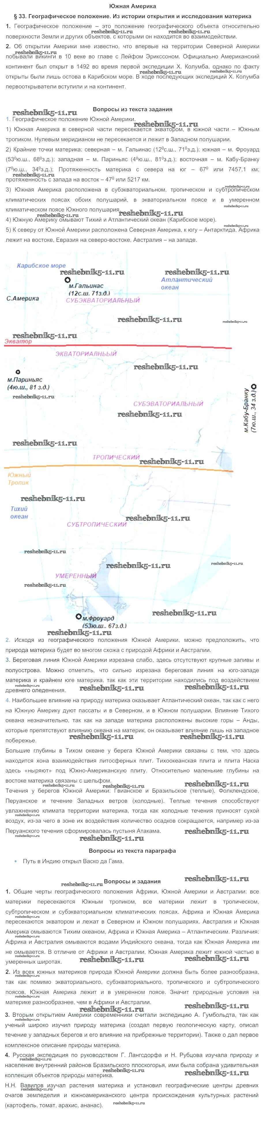 Готовая домашняя работа с ответами по Географии за 7 класс Коринская, Душина, Щенев Учебник Дрофа 2017 ФГОС - Параграфы 33