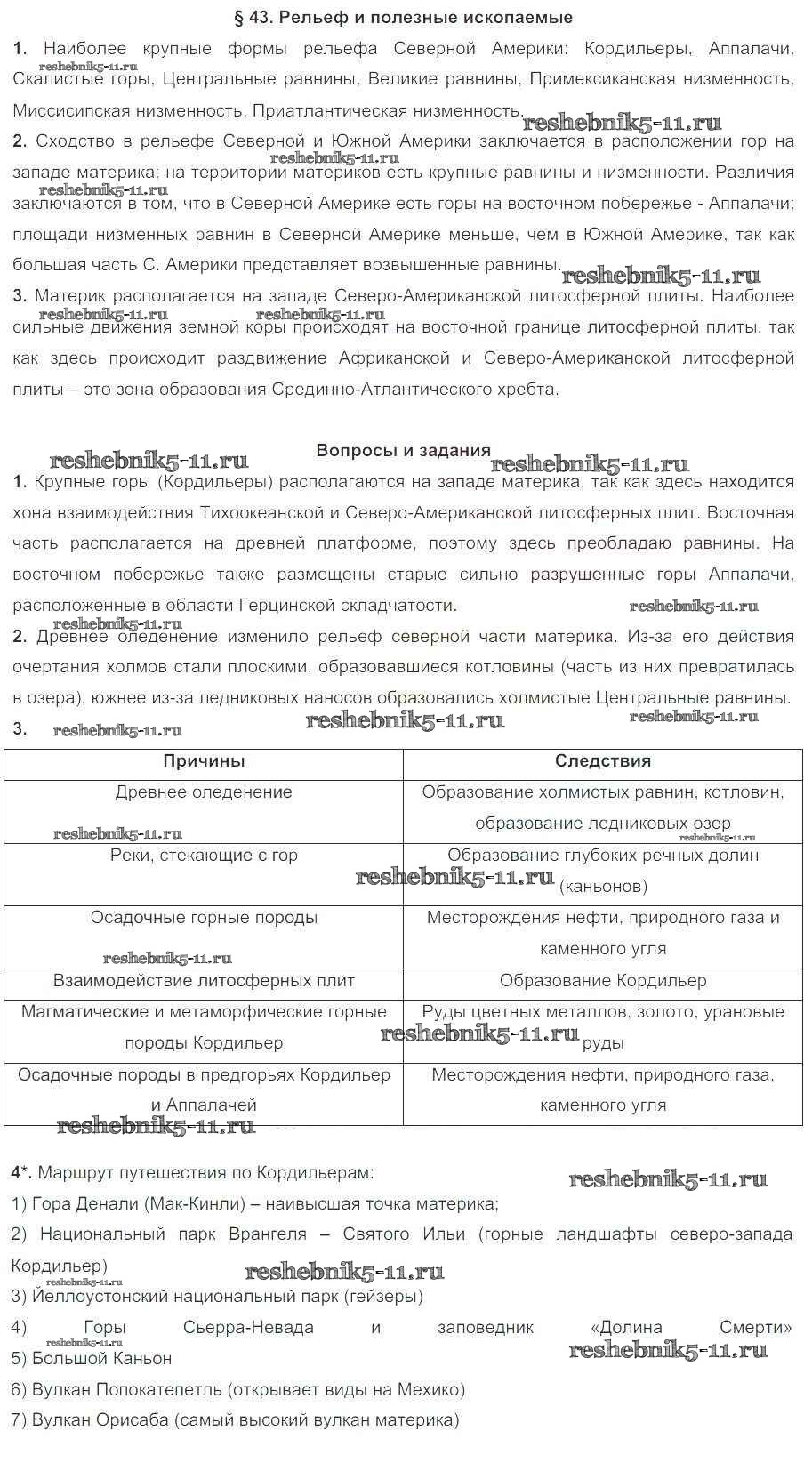 Готовая домашняя работа с ответами по Географии за 7 класс Коринская, Душина, Щенев Учебник Дрофа 2017 ФГОС - Параграфы 43