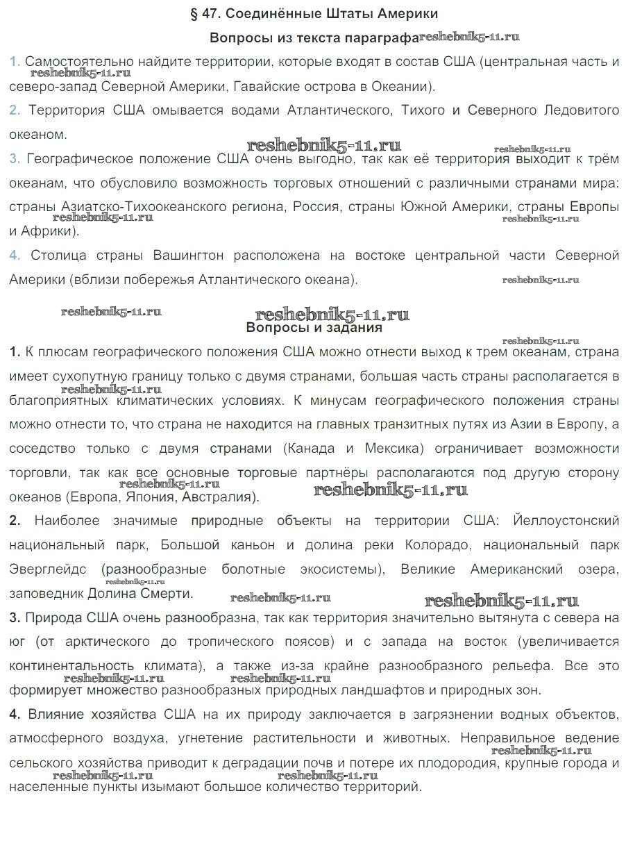 Готовая домашняя работа с ответами по Географии за 7 класс Коринская, Душина, Щенев Учебник Дрофа 2017 ФГОС - Параграфы 47