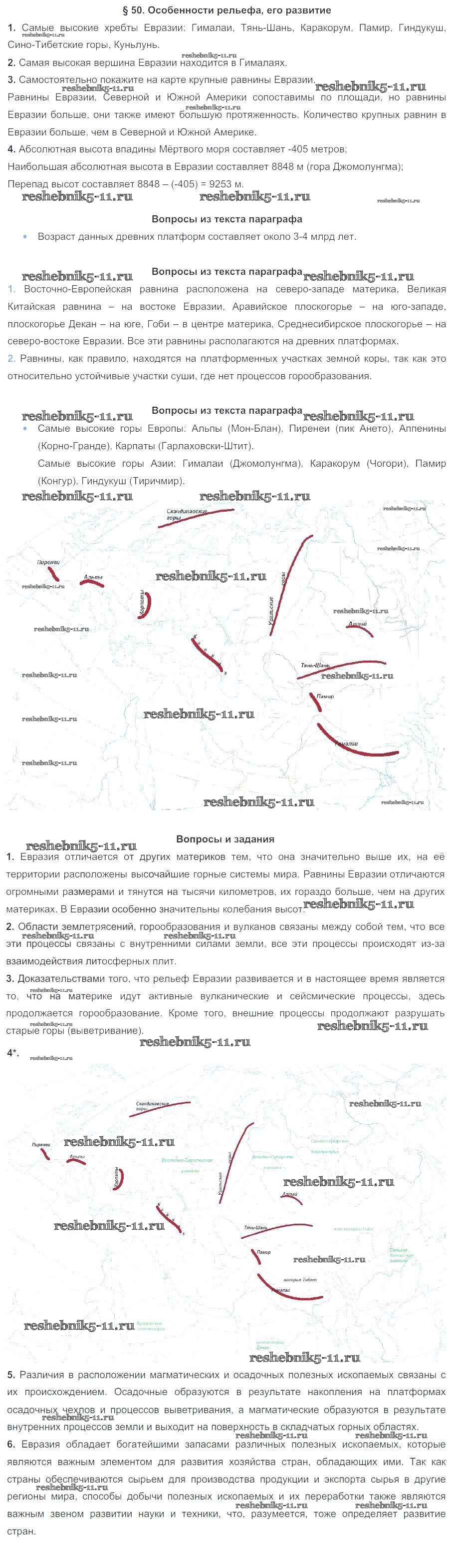 Готовая домашняя работа с ответами по Географии за 7 класс Коринская, Душина, Щенев Учебник Дрофа 2017 ФГОС - Параграфы 50