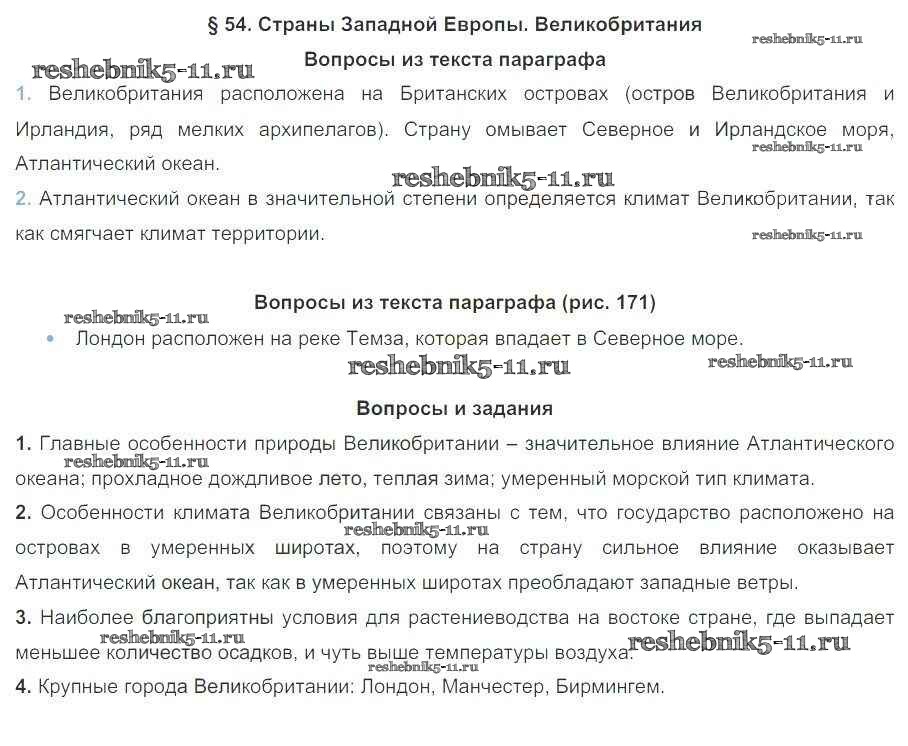 Готовая домашняя работа с ответами по Географии за 7 класс Коринская, Душина, Щенев Учебник Дрофа 2017 ФГОС - Параграфы 54