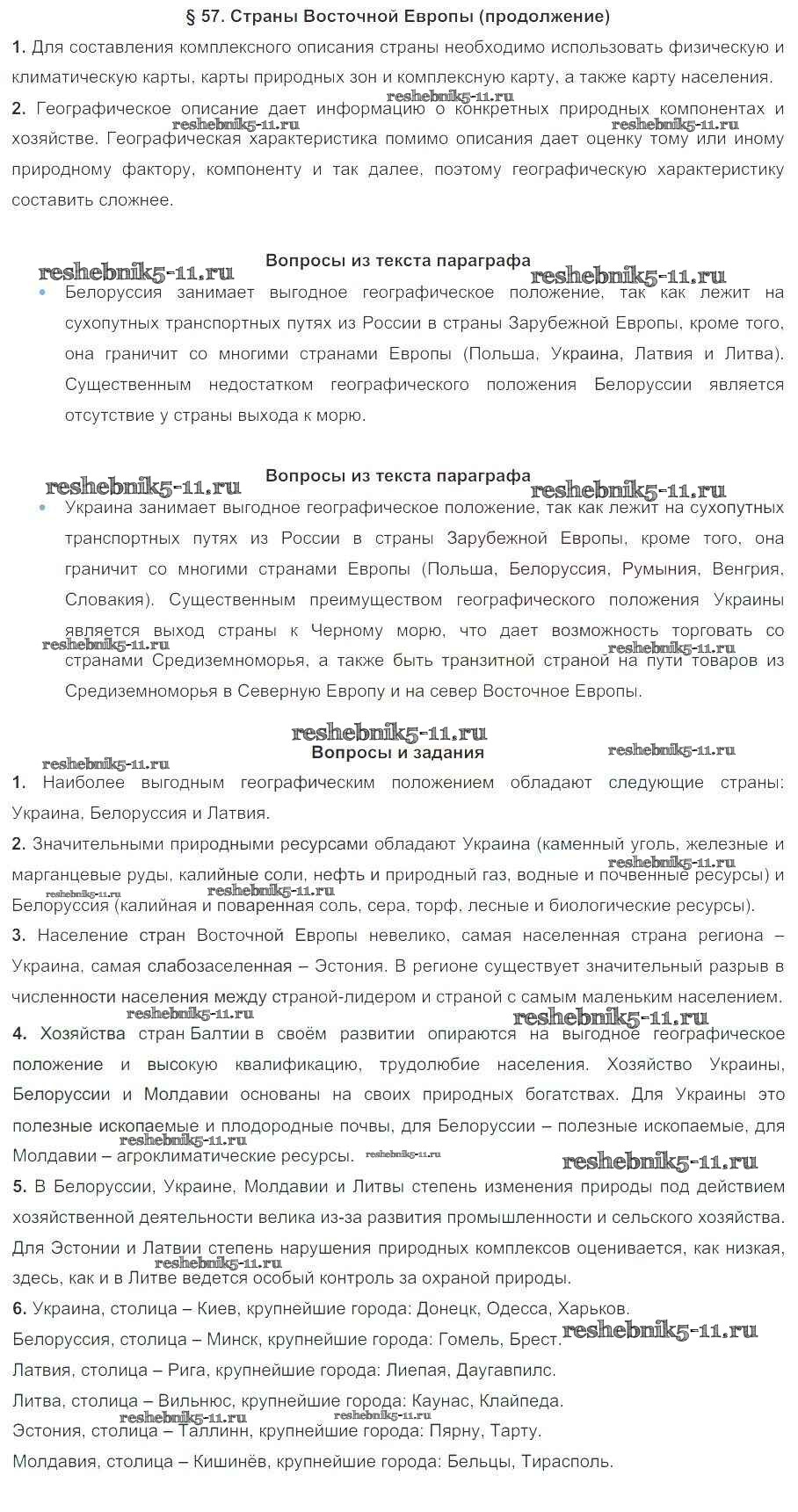 Готовая домашняя работа с ответами по Географии за 7 класс Коринская, Душина, Щенев Учебник Дрофа 2017 ФГОС - Параграфы 57