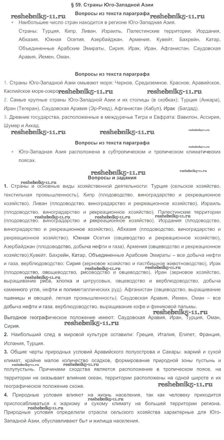 Готовая домашняя работа с ответами по Географии за 7 класс Коринская, Душина, Щенев Учебник Дрофа 2017 ФГОС - Параграфы 59