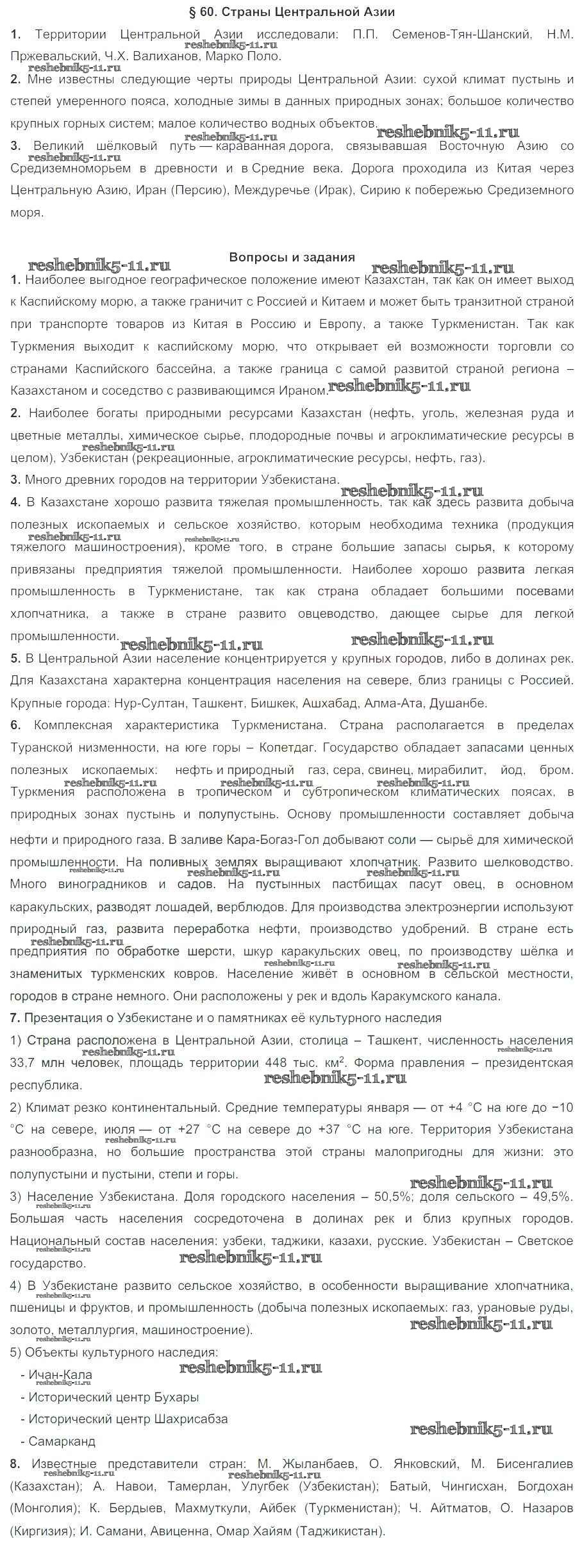 Готовая домашняя работа с ответами по Географии за 7 класс Коринская, Душина, Щенев Учебник Дрофа 2017 ФГОС - Параграфы 60