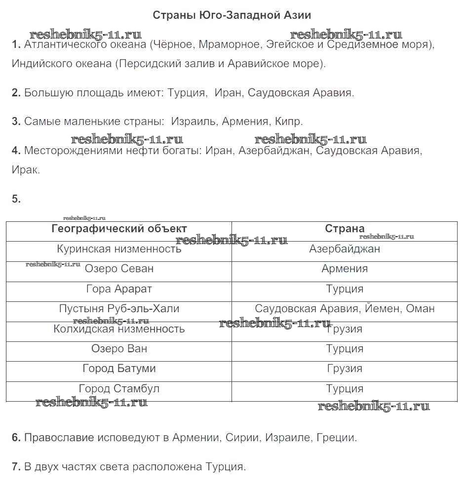 Готовая домашняя работа с ответами по Географии за 7 класс Душина Рабочая тетрадь Алгоритм успеха Часть 1, 2 Вентана-граф 2017 ФГОС - Часть 1. Страницы 62