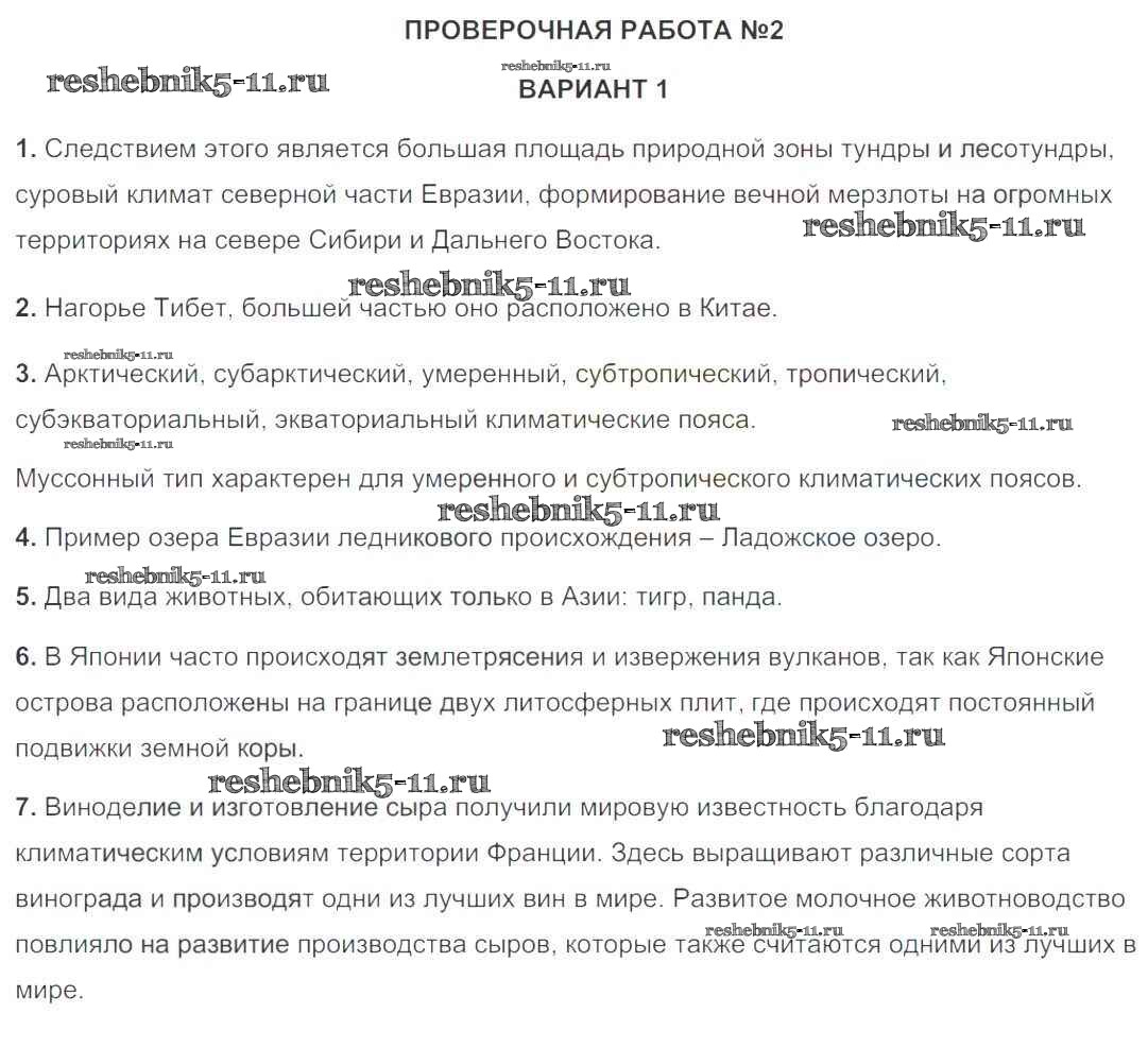 Готовая домашняя работа с ответами по Географии за 7 класс Баранов, Дюкова Тетрадь-экзаменатор Сферы Просвещение 2015 ФГОС - Страницы 66