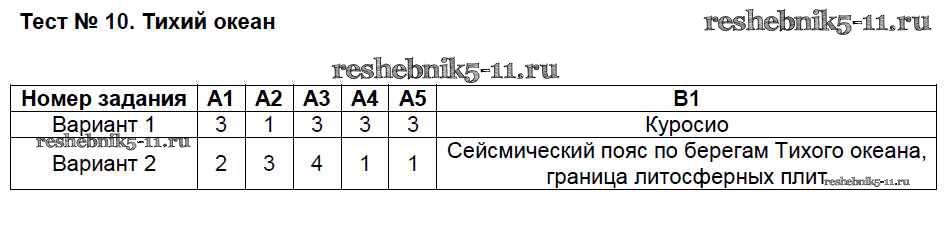 Готовая домашняя работа с ответами по Географии за 7 класс Жижина Контрольно-измерительные материалы (КИМ) ВАКО 2017 ФГОС - Тесты 10