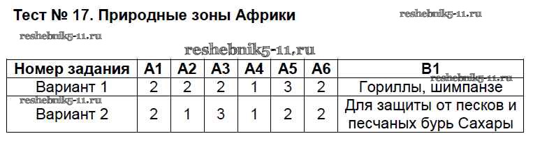 Готовая домашняя работа с ответами по Географии за 7 класс Жижина Контрольно-измерительные материалы (КИМ) ВАКО 2017 ФГОС - Тесты 17