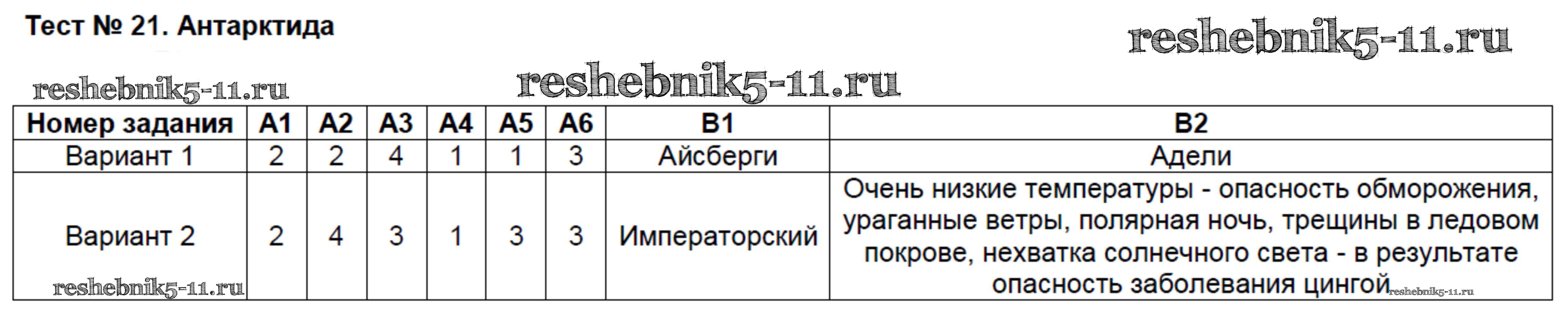 Готовая домашняя работа с ответами по Географии за 7 класс Жижина Контрольно-измерительные материалы (КИМ) ВАКО 2017 ФГОС - Тесты 21