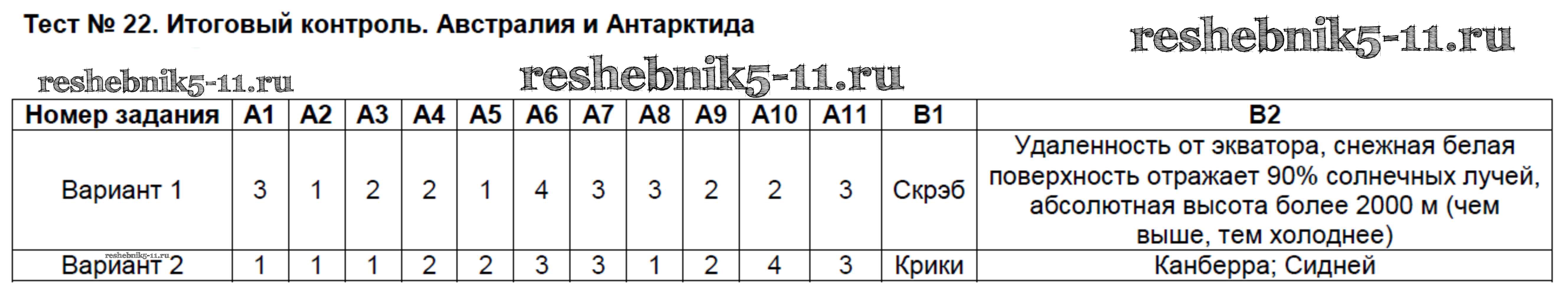 Готовая домашняя работа с ответами по Географии за 7 класс Жижина Контрольно-измерительные материалы (КИМ) ВАКО 2017 ФГОС - Тесты 22