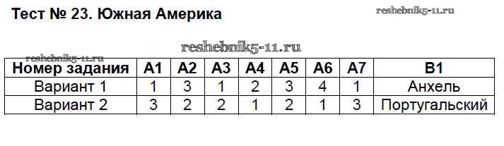 Готовая домашняя работа с ответами по Географии за 7 класс Жижина Контрольно-измерительные материалы (КИМ) ВАКО 2017 ФГОС - Тесты 23