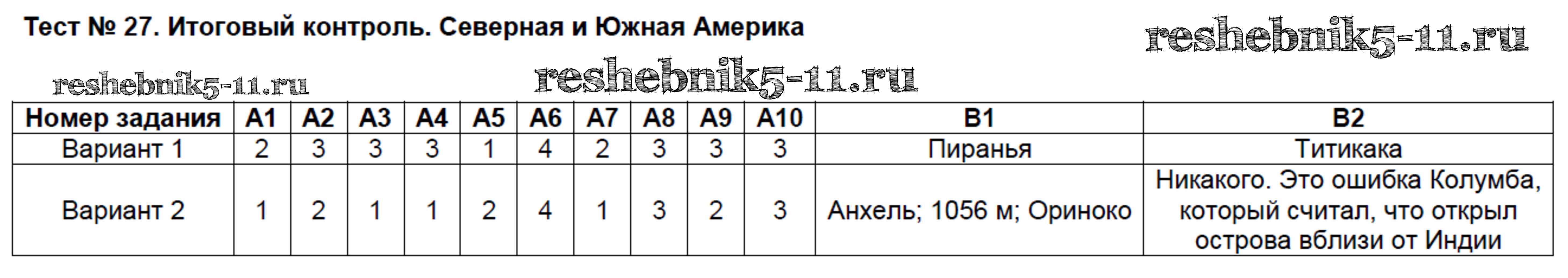 Готовая домашняя работа с ответами по Географии за 7 класс Жижина Контрольно-измерительные материалы (КИМ) ВАКО 2017 ФГОС - Тесты 27
