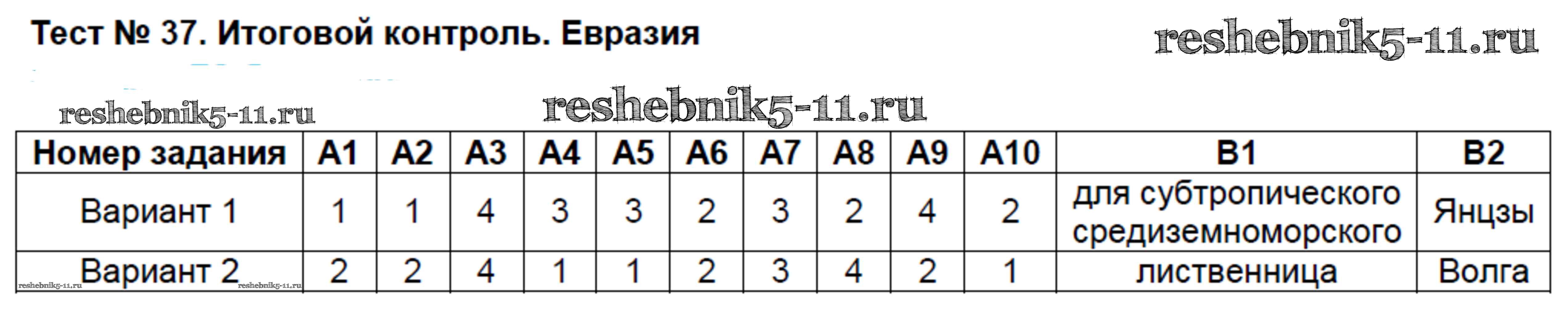 Готовая домашняя работа с ответами по Географии за 7 класс Жижина Контрольно-измерительные материалы (КИМ) ВАКО 2017 ФГОС - Тесты 37
