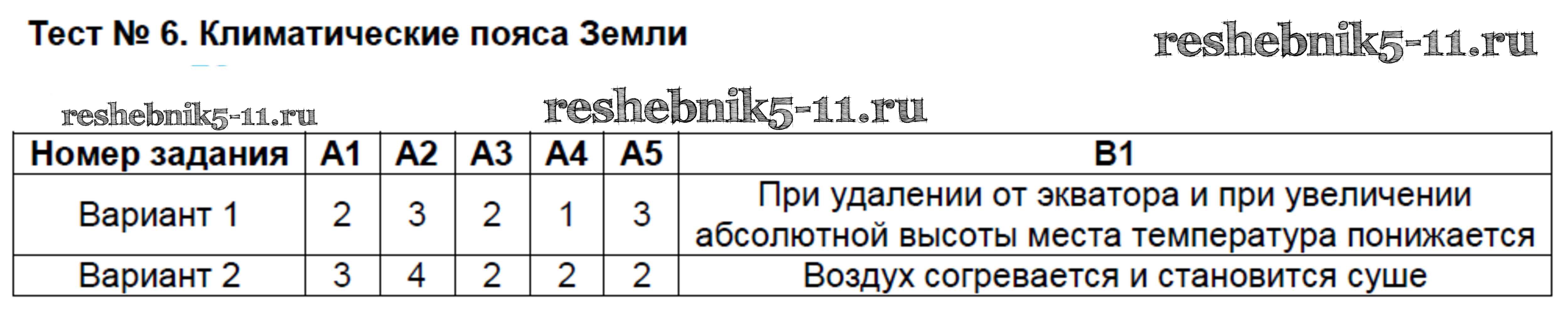 Готовая домашняя работа с ответами по Географии за 7 класс Жижина Контрольно-измерительные материалы (КИМ) ВАКО 2017 ФГОС - Тесты 6