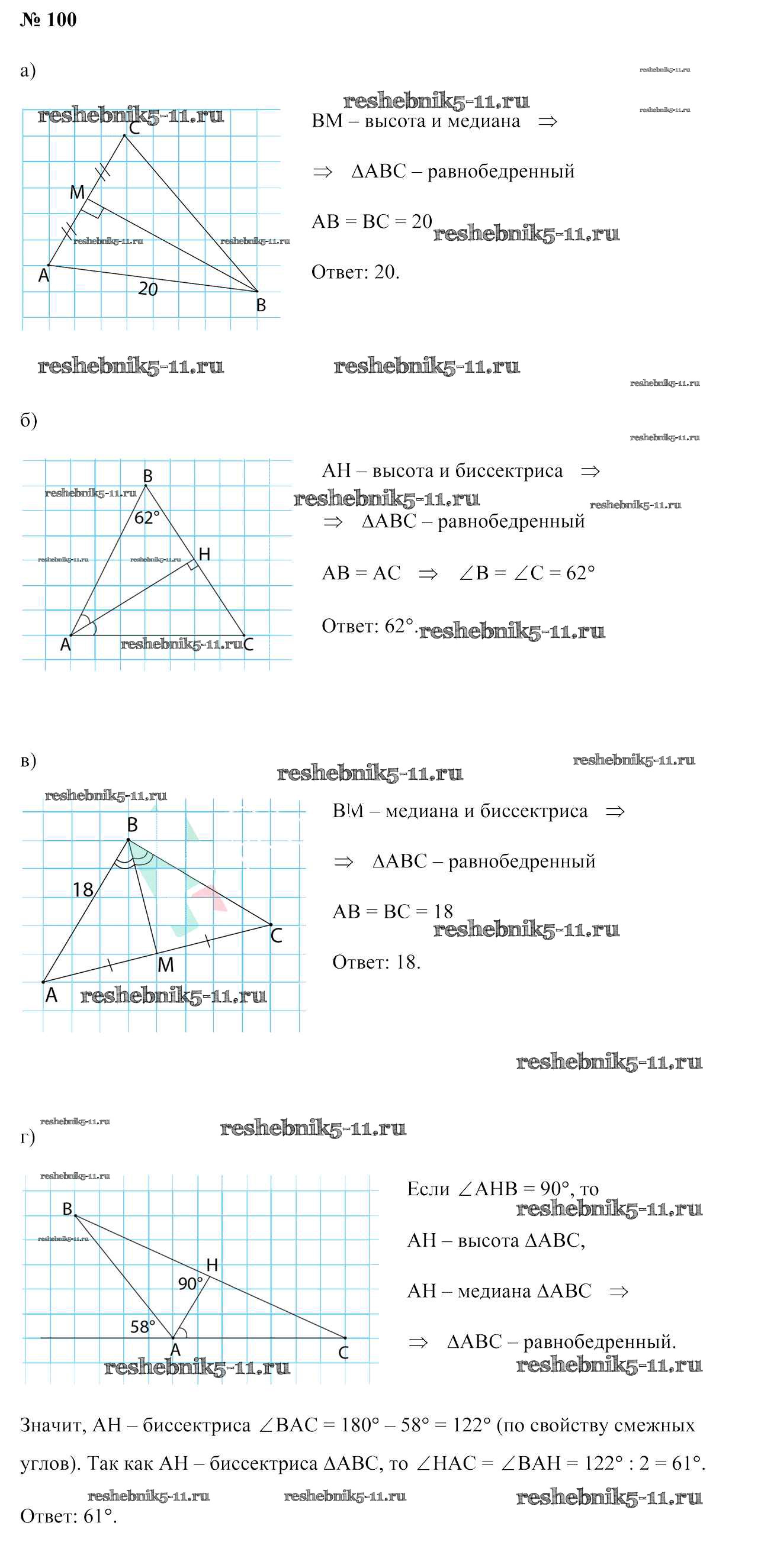 Готовая домашняя работа с ответами по Геометрии за 7 класс Казаков Учебник Народная асвета 2017 - Задачи 100