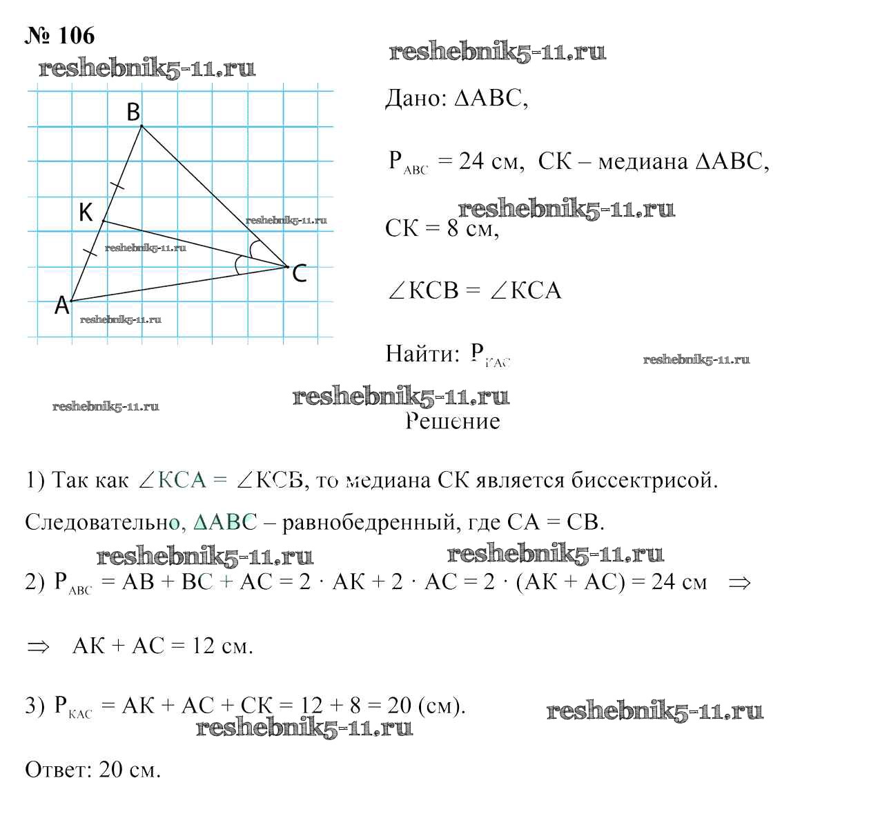 Готовая домашняя работа с ответами по Геометрии за 7 класс Казаков Учебник Народная асвета 2017 - Задачи 106