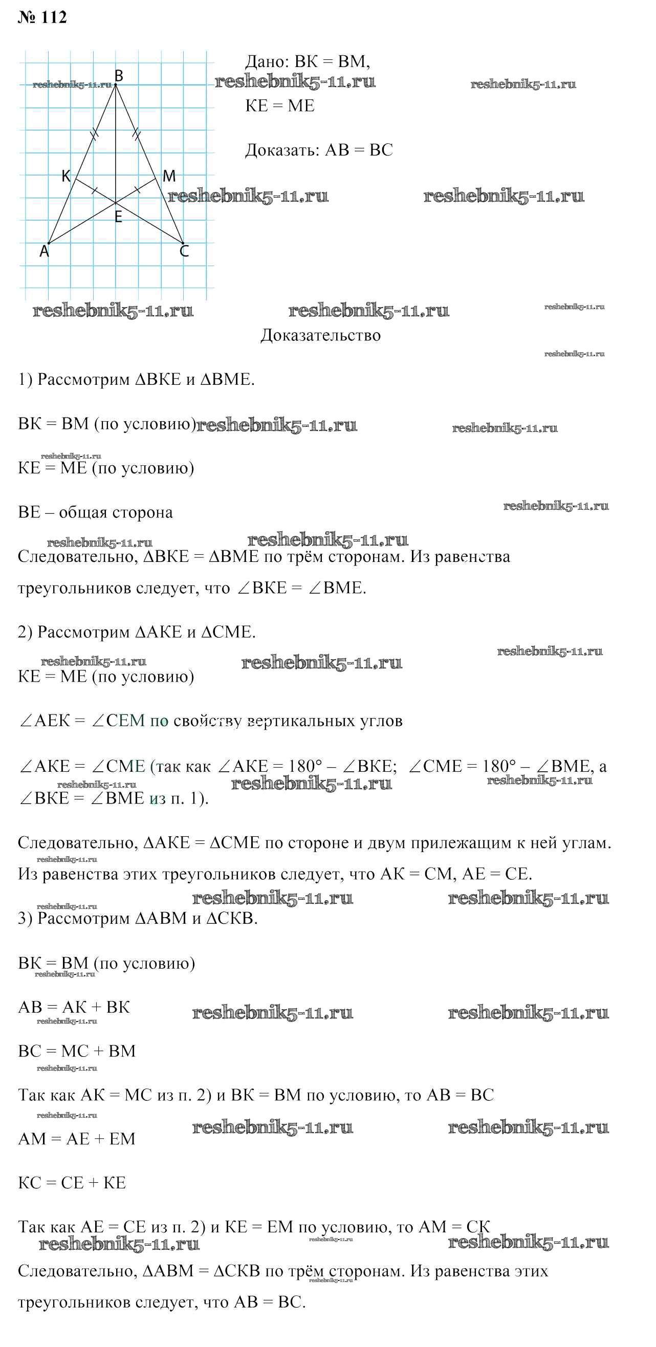 Готовая домашняя работа с ответами по Геометрии за 7 класс Казаков Учебник Народная асвета 2017 - Задачи 112