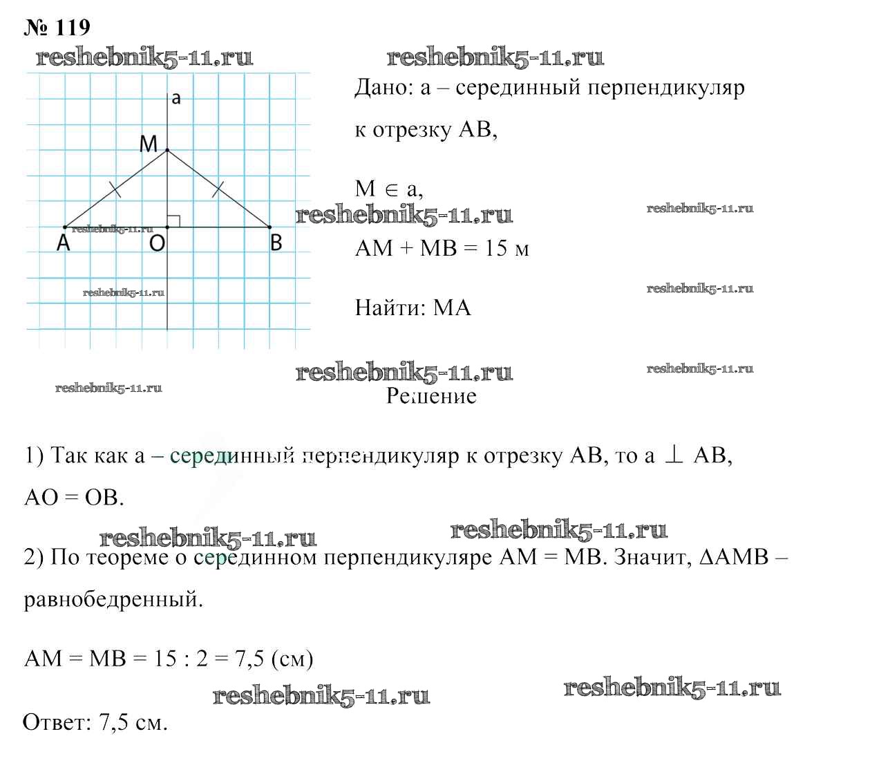 Готовая домашняя работа с ответами по Геометрии за 7 класс Казаков Учебник Народная асвета 2017 - Задачи 119