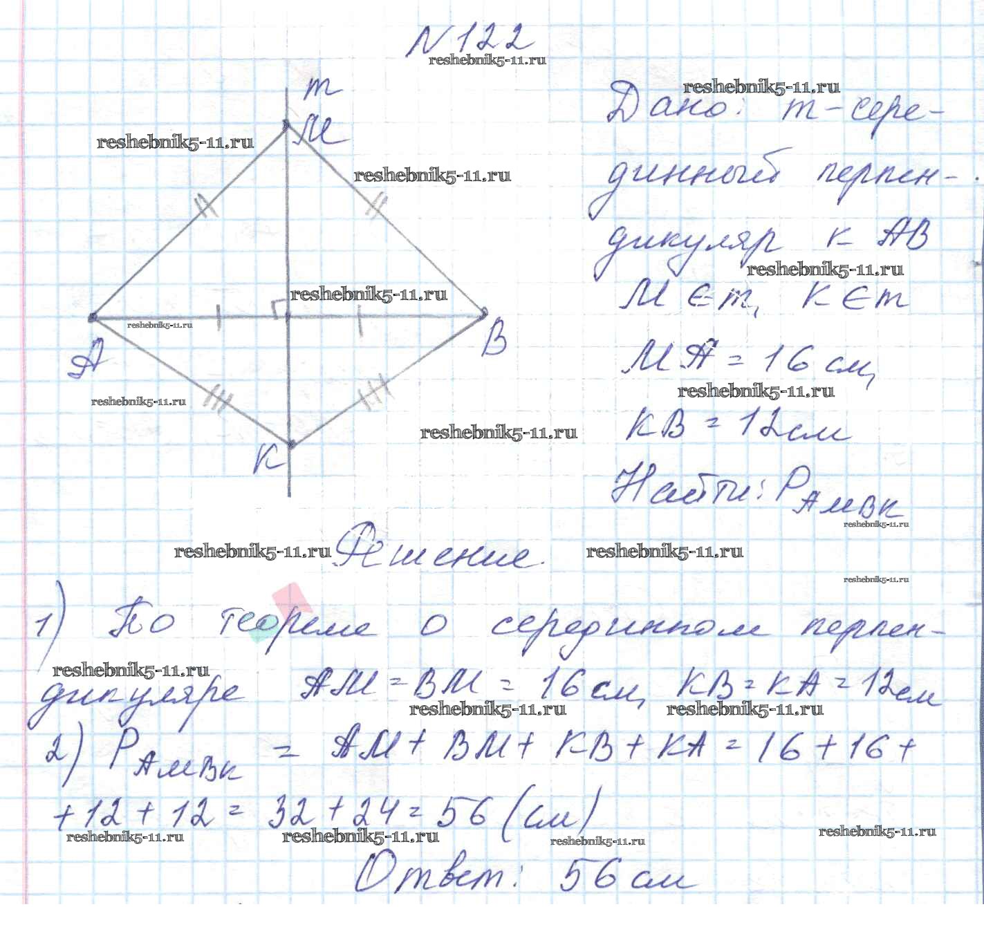 Готовая домашняя работа с ответами по Геометрии за 7 класс Казаков Учебник Народная асвета 2017 - Задачи 122