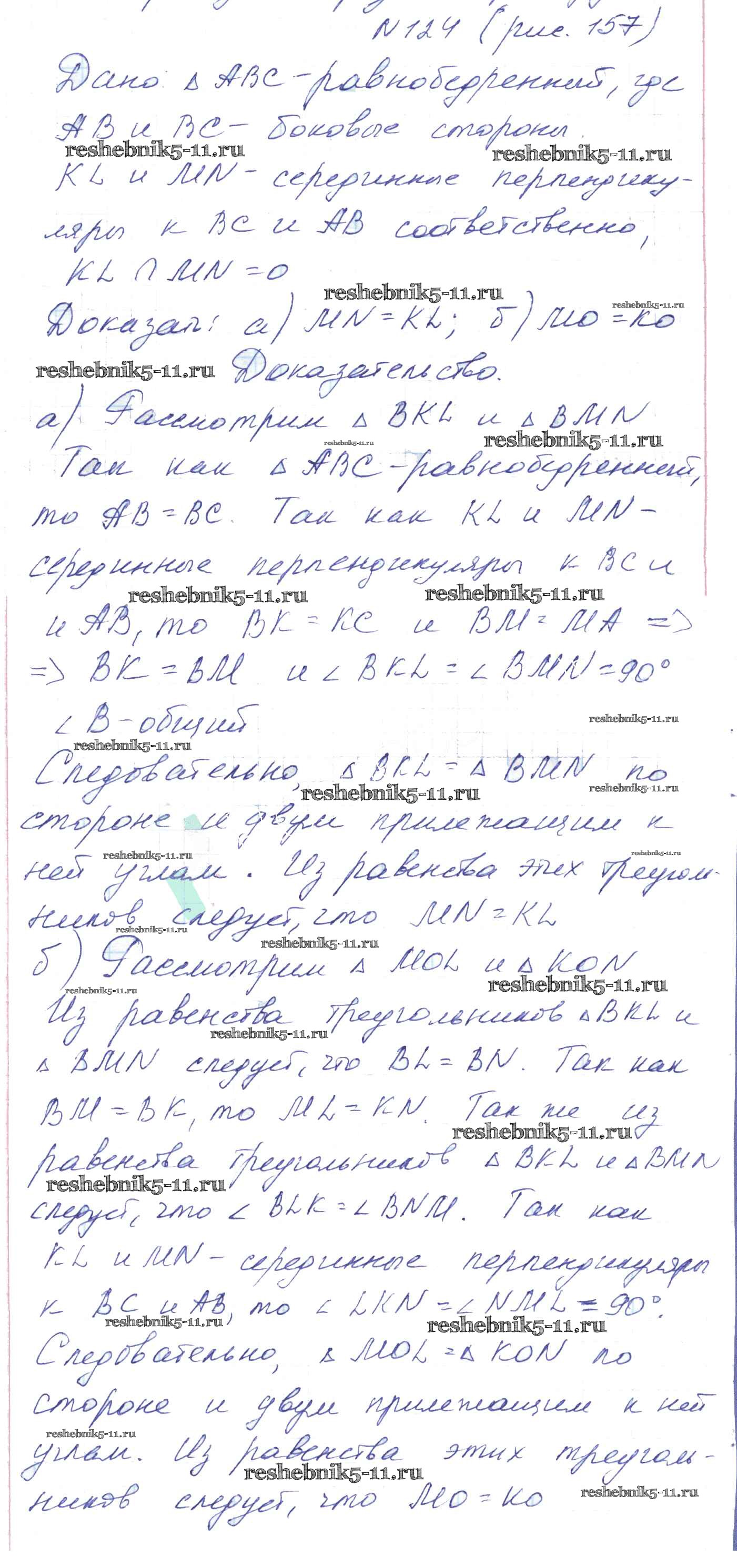 Готовая домашняя работа с ответами по Геометрии за 7 класс Казаков Учебник Народная асвета 2017 - Задачи 124
