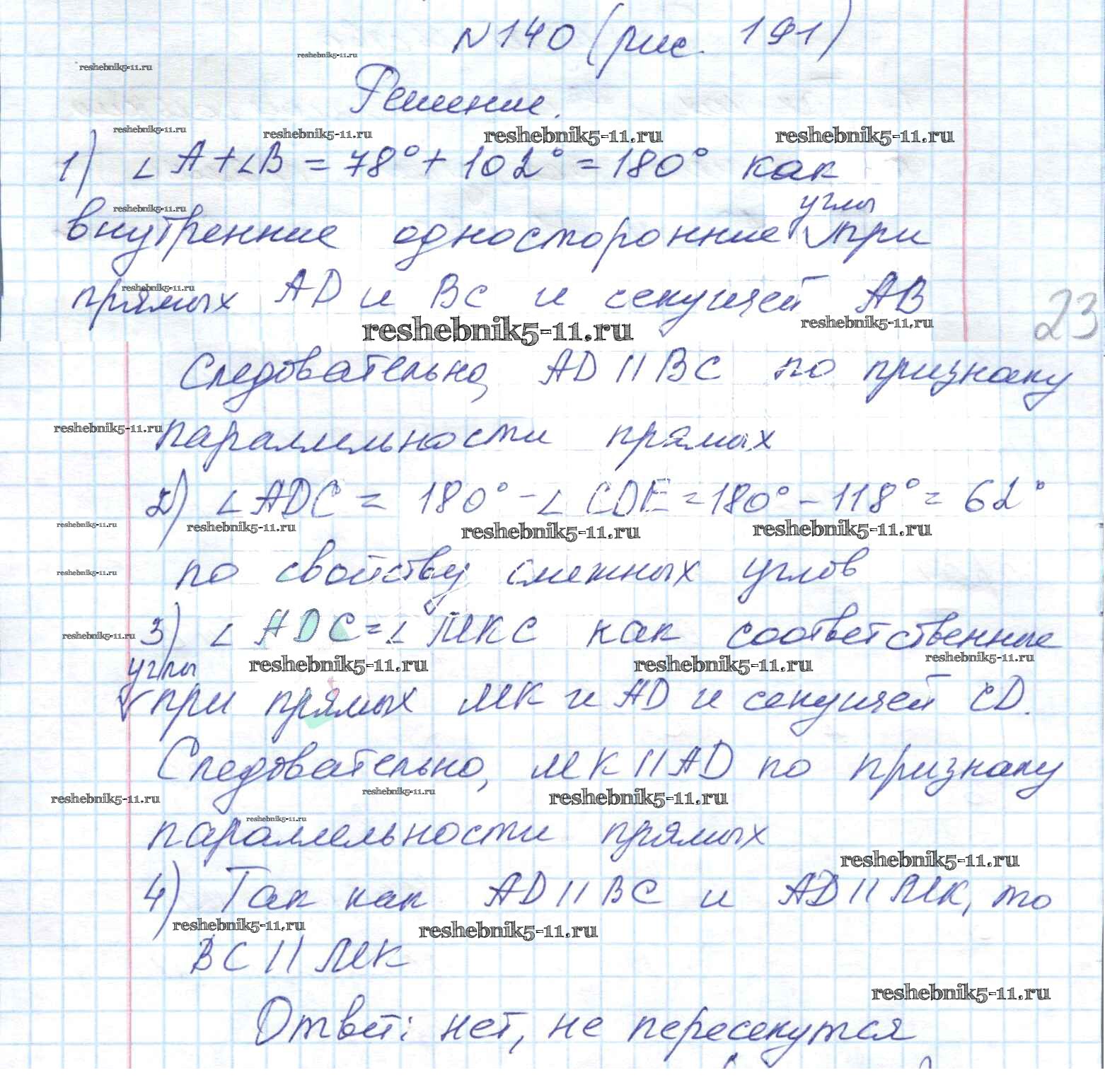 Готовая домашняя работа с ответами по Геометрии за 7 класс Казаков Учебник Народная асвета 2017 - Задачи 140