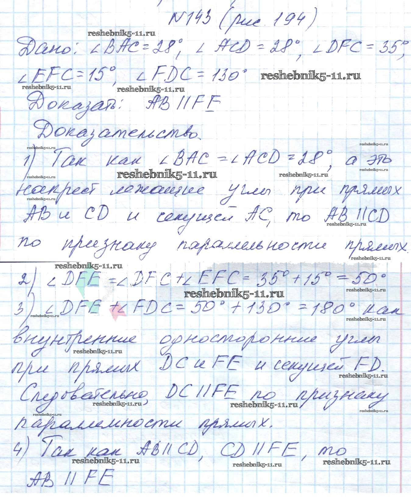 Готовая домашняя работа с ответами по Геометрии за 7 класс Казаков Учебник Народная асвета 2017 - Задачи 143