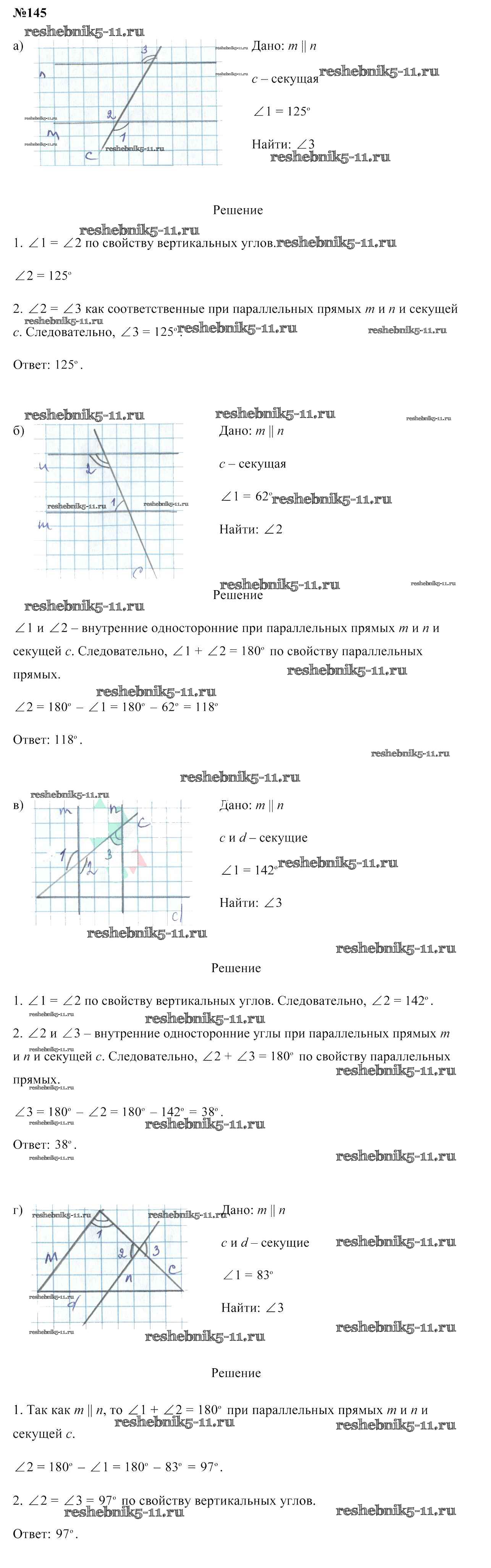 Готовая домашняя работа с ответами по Геометрии за 7 класс Казаков Учебник Народная асвета 2017 - Задачи 145