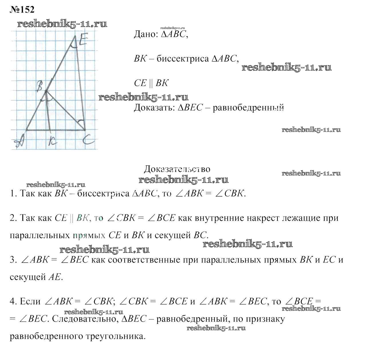 Готовая домашняя работа с ответами по Геометрии за 7 класс Казаков Учебник Народная асвета 2017 - Задачи 152