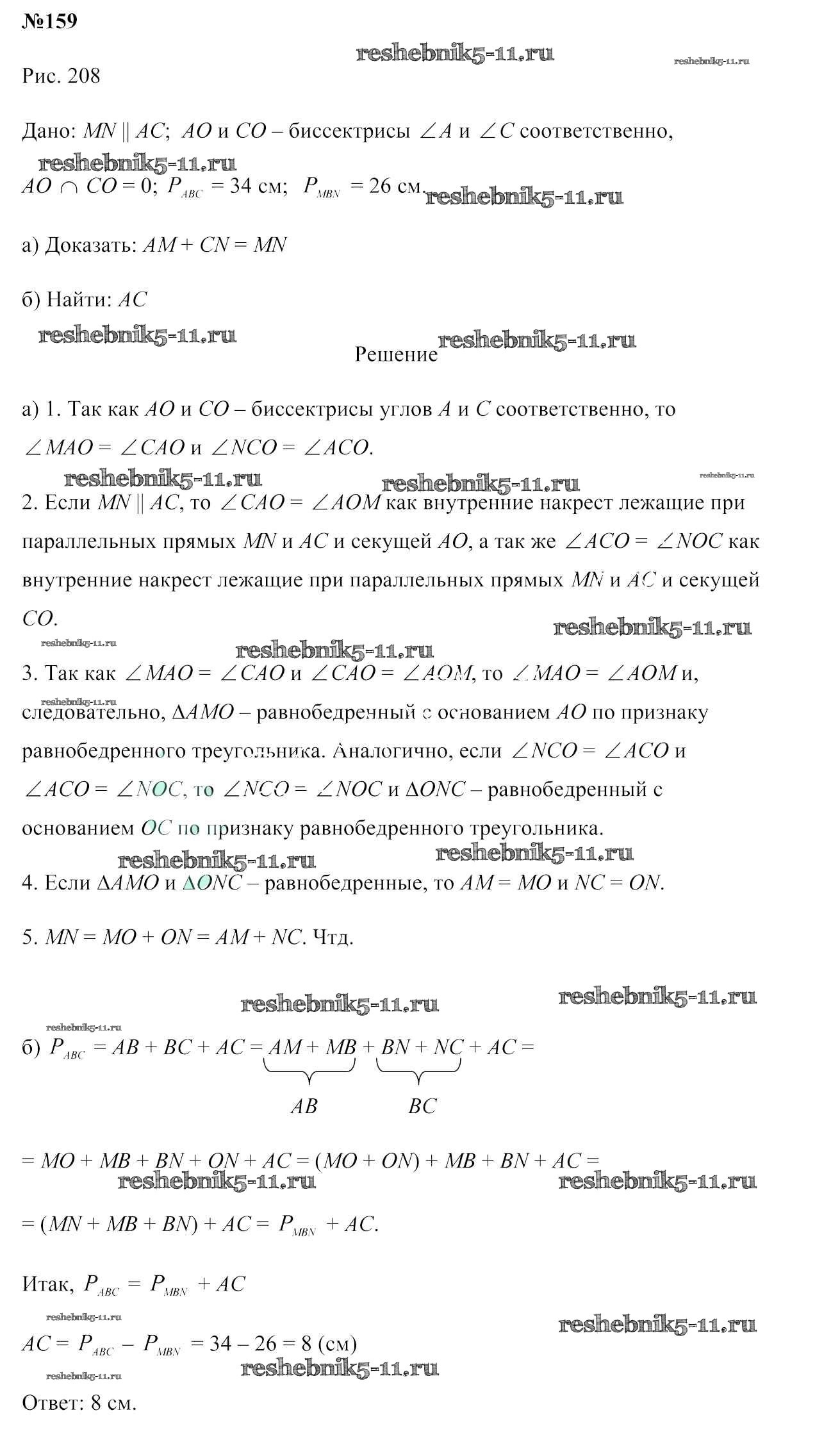 Готовая домашняя работа с ответами по Геометрии за 7 класс Казаков Учебник Народная асвета 2017 - Задачи 159