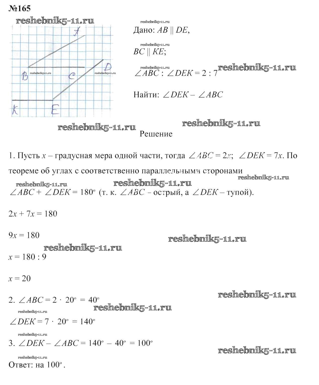 Готовая домашняя работа с ответами по Геометрии за 7 класс Казаков Учебник Народная асвета 2017 - Задачи 165