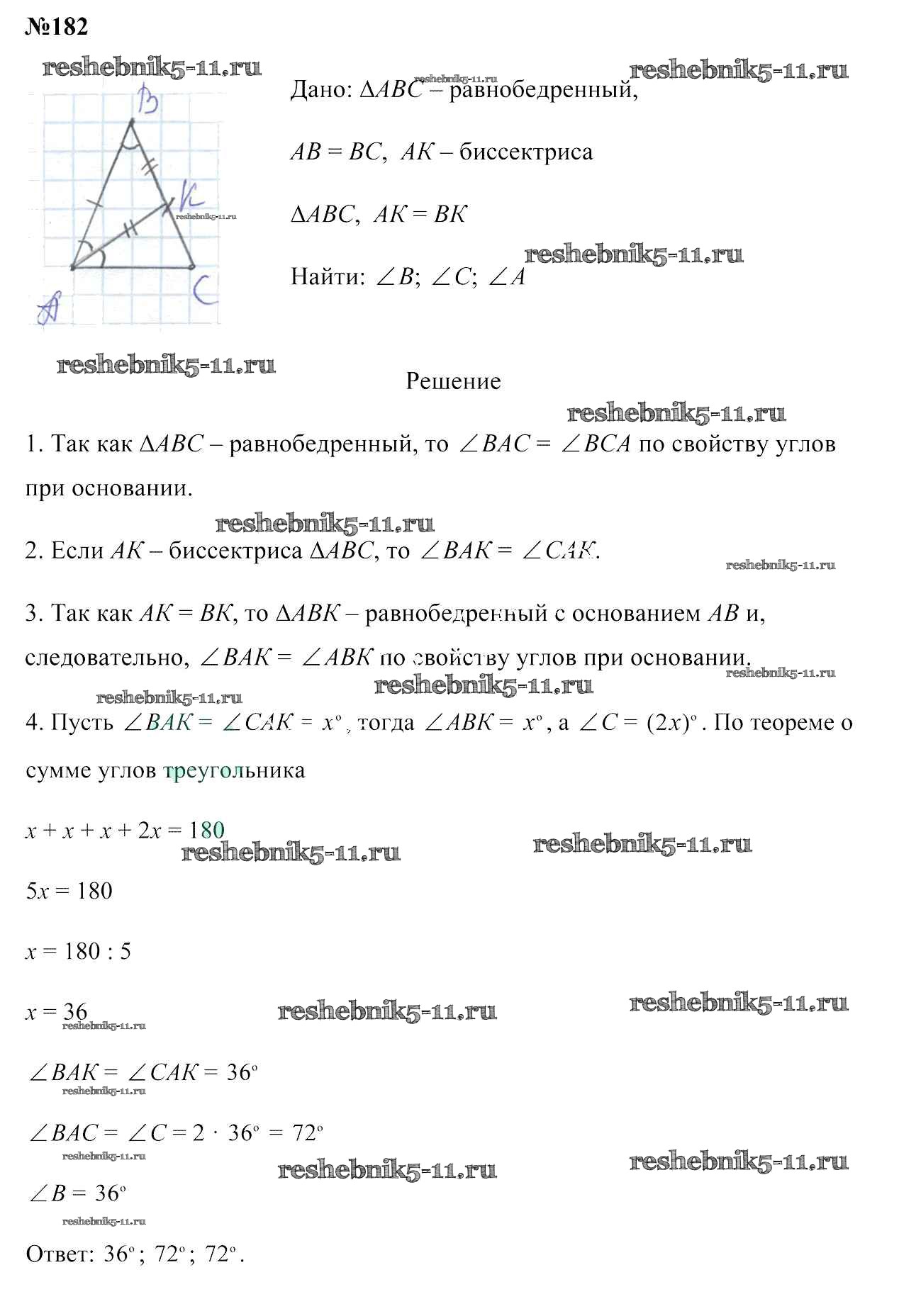 Готовая домашняя работа с ответами по Геометрии за 7 класс Казаков Учебник Народная асвета 2017 - Задачи 182
