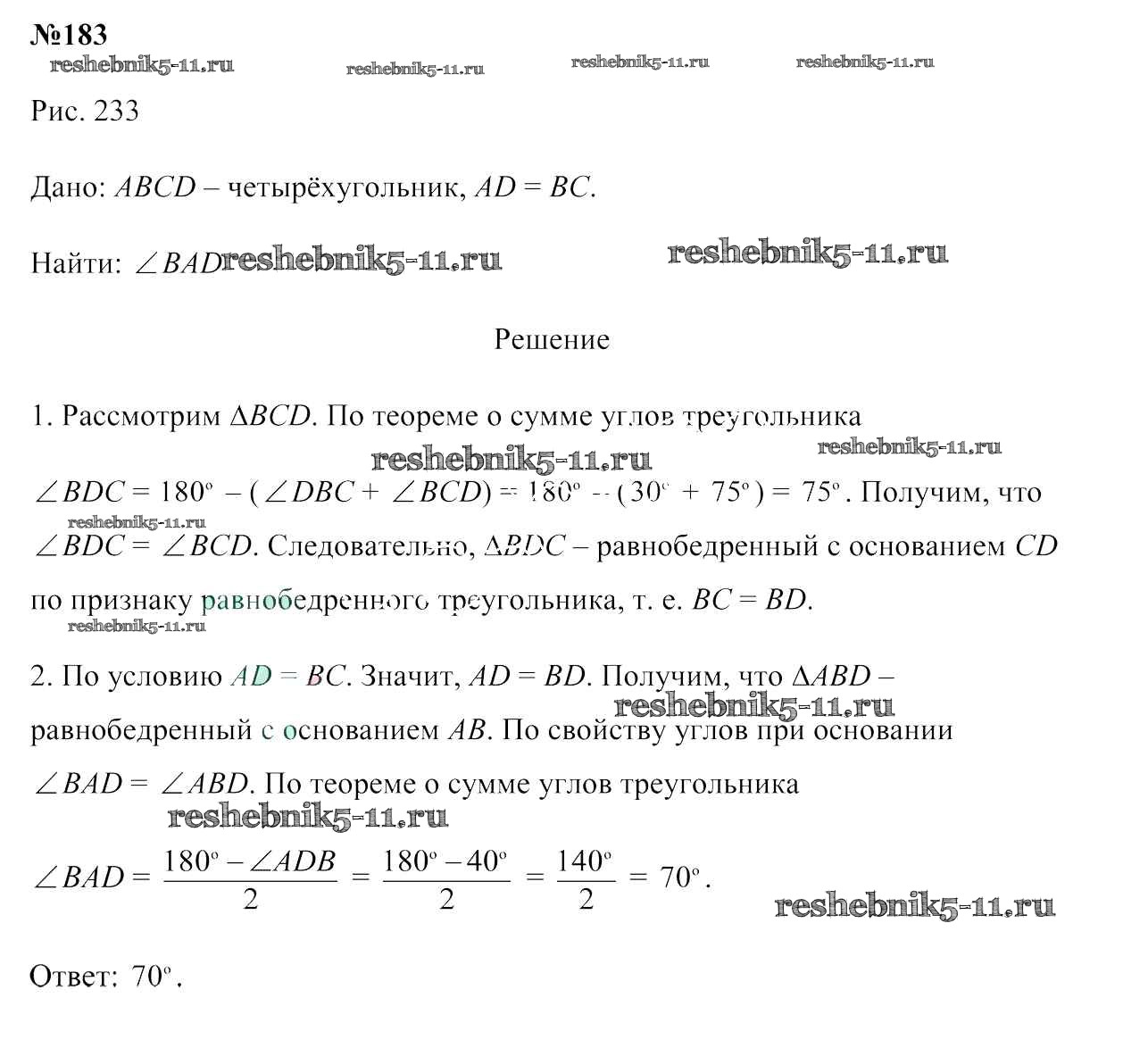 Готовая домашняя работа с ответами по Геометрии за 7 класс Казаков Учебник Народная асвета 2017 - Задачи 183