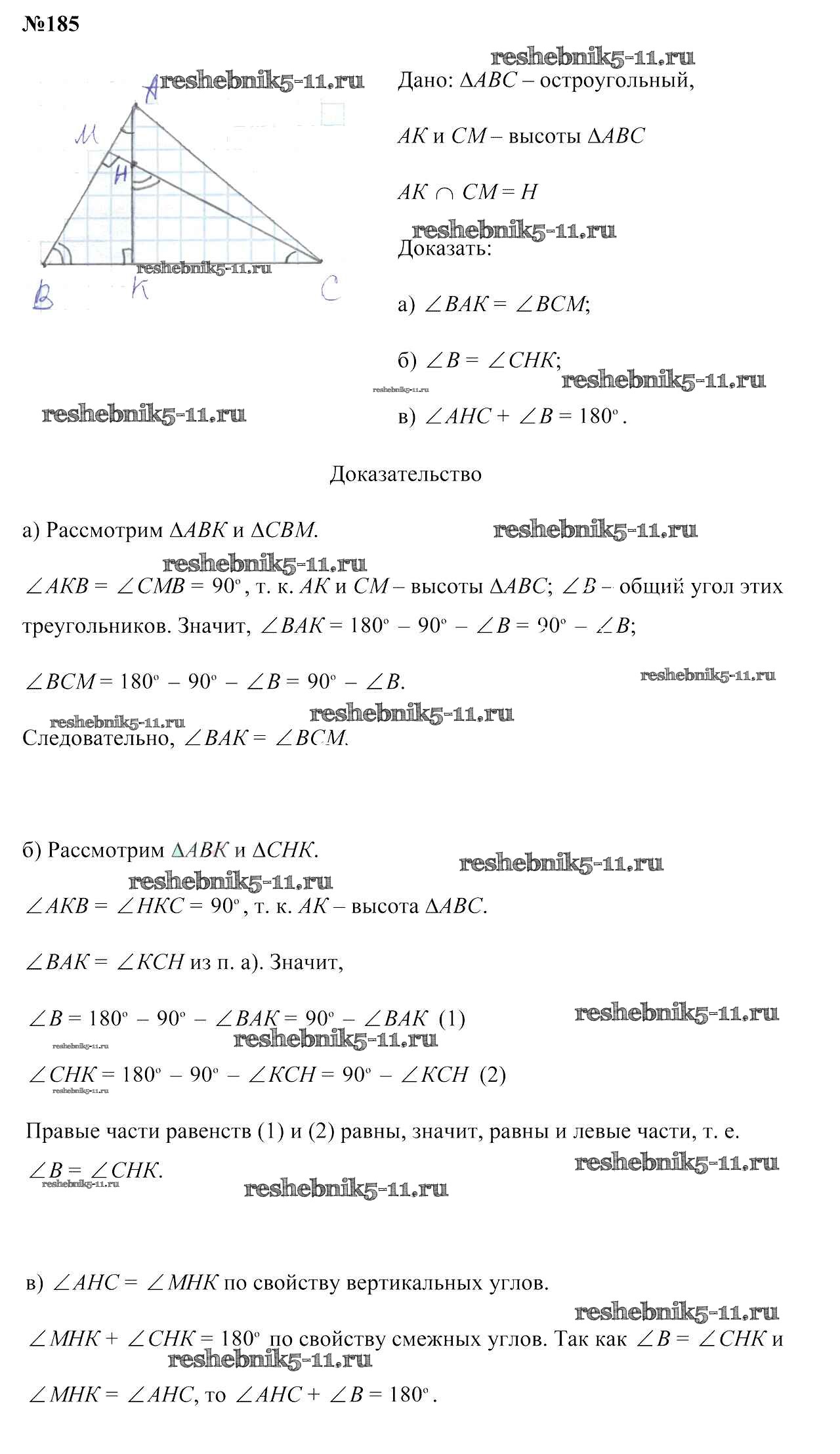 Готовая домашняя работа с ответами по Геометрии за 7 класс Казаков Учебник Народная асвета 2017 - Задачи 185