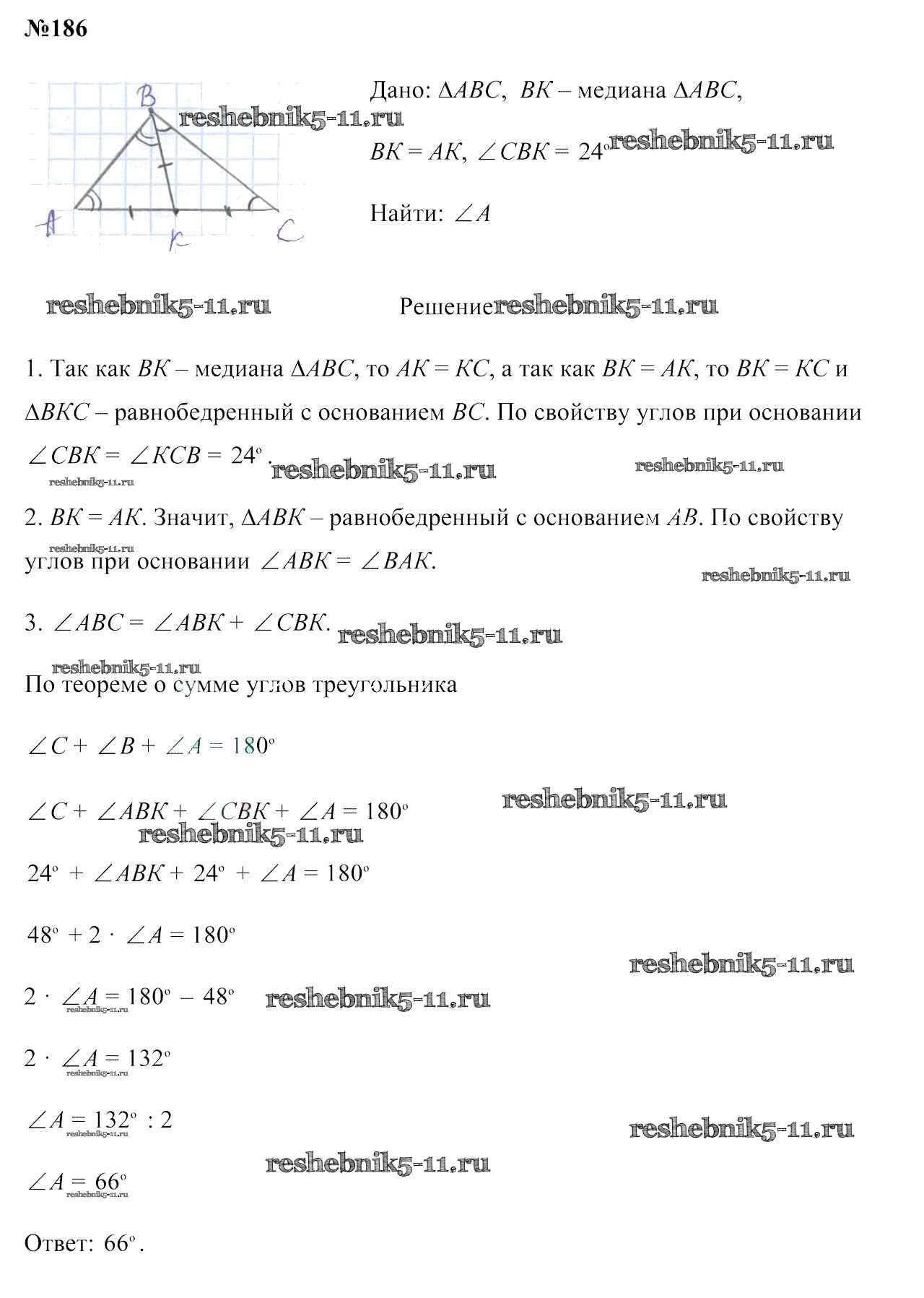 Готовая домашняя работа с ответами по Геометрии за 7 класс Казаков Учебник Народная асвета 2017 - Задачи 186
