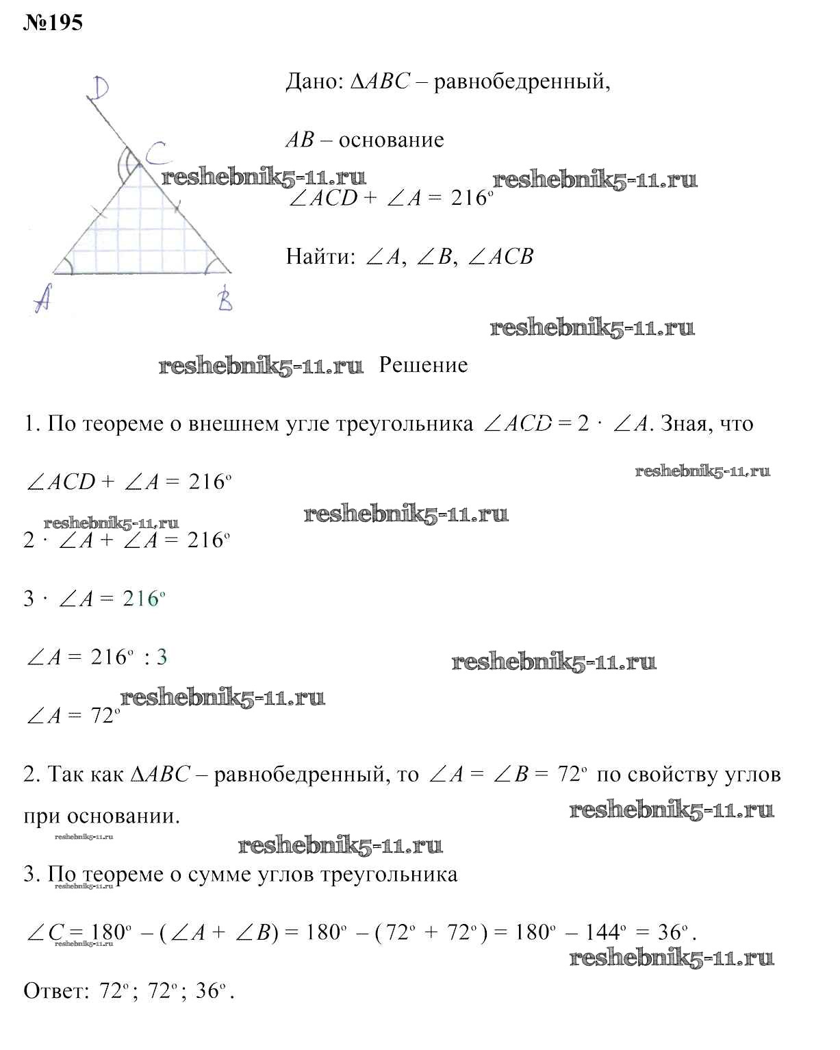 Готовая домашняя работа с ответами по Геометрии за 7 класс Казаков Учебник Народная асвета 2017 - Задачи 195