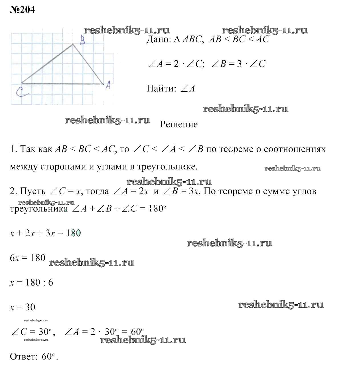 Готовая домашняя работа с ответами по Геометрии за 7 класс Казаков Учебник Народная асвета 2017 - Задачи 204