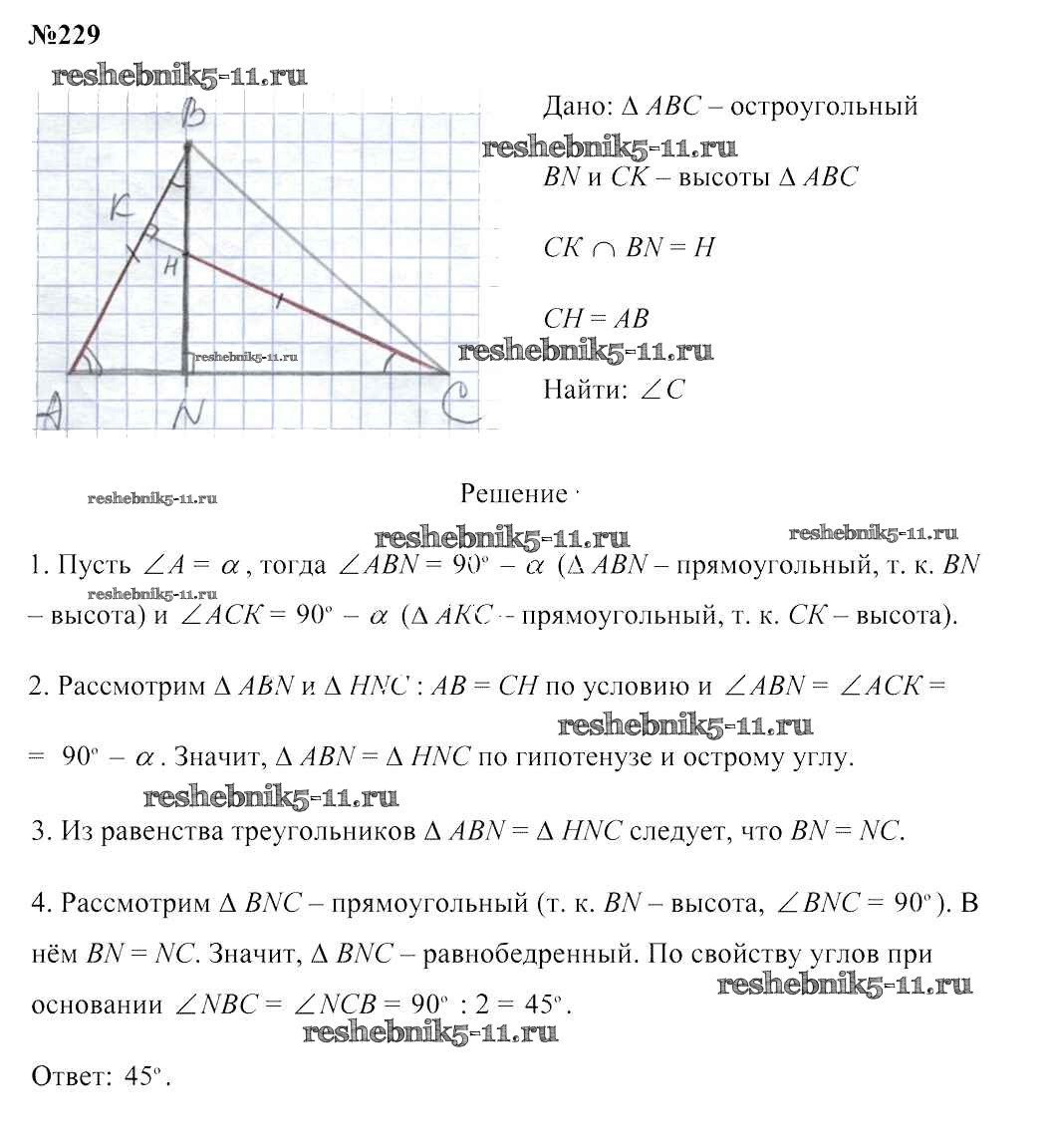 Готовая домашняя работа с ответами по Геометрии за 7 класс Казаков Учебник Народная асвета 2017 - Задачи 229