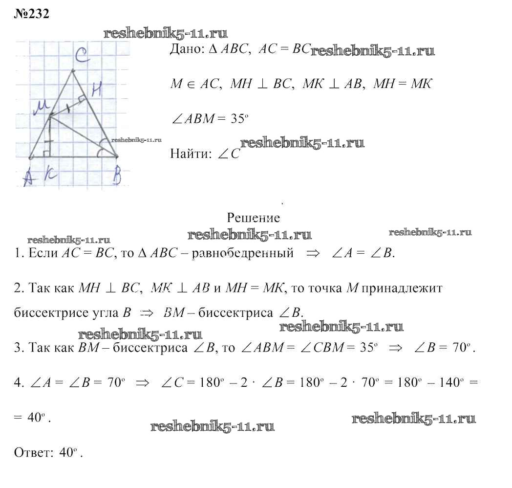 Готовая домашняя работа с ответами по Геометрии за 7 класс Казаков Учебник Народная асвета 2017 - Задачи 232