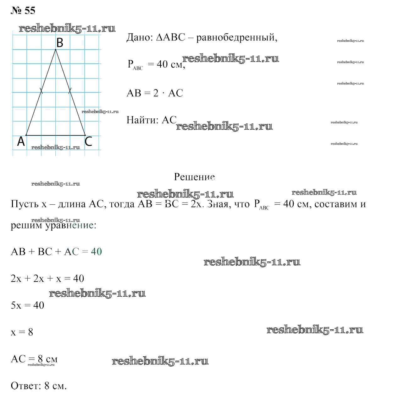 Готовая домашняя работа с ответами по Геометрии за 7 класс Казаков Учебник Народная асвета 2017 - Задачи 55